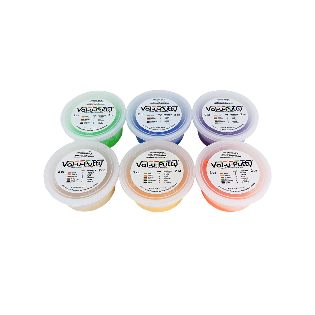 Set de 6 niveles de resistencia, para el tratamiento y rehabilitación de la mano, fortaleciendo el agarre de esta. El material de la masa es libre de gluten y látex.